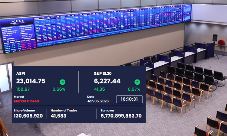 At the end of trading, the ASPI was recorded at 23,014.75 points, marking an increase of 150.67 points, or 0.66 percent, from the previous trading day. Simultaneously, the S&P SL20 Index also experienced an uptick, gaining 41.35 points to close at 6,227.44.