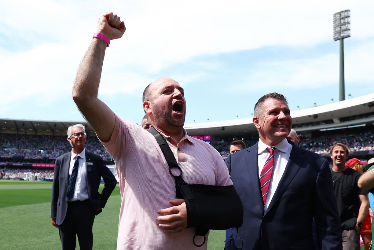A sold-out SCG crowd roared as Ahmed al-Ahmed, his arm in sling and his hand on his heart, walked onto the pitch just before play began of the final Test of the Ashes series.