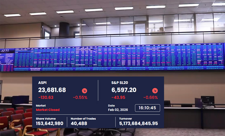 On February 2nd, the Colombo Stock Exchange (CSE) witnessed a notable decline as major indices closed lower amidst moderate trading activity. The benchmark All Share Price Index (ASPI) dropped by 130.63 points, or approximately 0.55%, concluding the day at 23,681.68. In parallel, the S&P SL20 Index, which monitors the top 20 companies by market capitalization, decreased by 43.95 points, ending at 6,597.20.