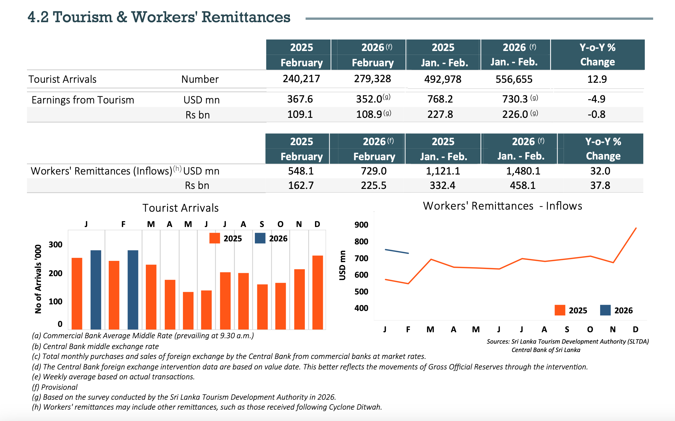 However, this positive trend faces emerging downside risks from the escalating Iran–US conflict. Given that a substantial (70%) share of Sri Lanka’s remittances originates from the Middle East, any disruption to economic activity in the Gulf region could have a direct impact on inflows. Heightened geopolitical tensions may lead to slower growth in key sectors such as construction and services, where many Sri Lankan workers are employed, potentially affecting job security, wages, and remittance capacity.