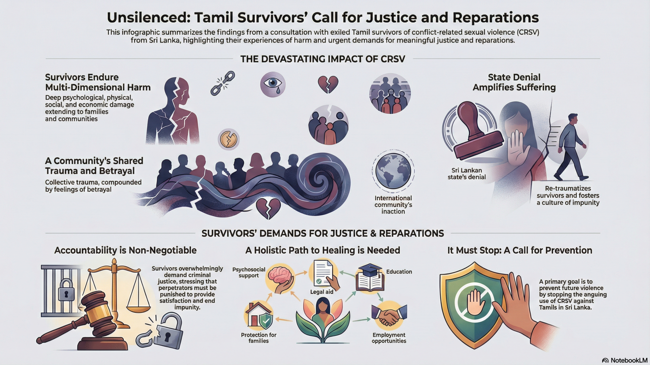 The report, titled “Justice and Reparations Needs of Exiled Tamil Sri Lankan Survivors of Conflict-Related Sexual Violence,” draws from consultations with exiled Tamils and calls for urgent international intervention. It underscores the failure of the Sri Lankan government to address past atrocities and the need for healing.