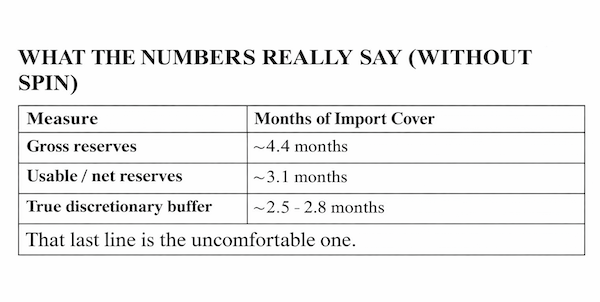 Sri Lanka’s reserves look stable on paper, adequate in headlines, and tight where it actually counts.