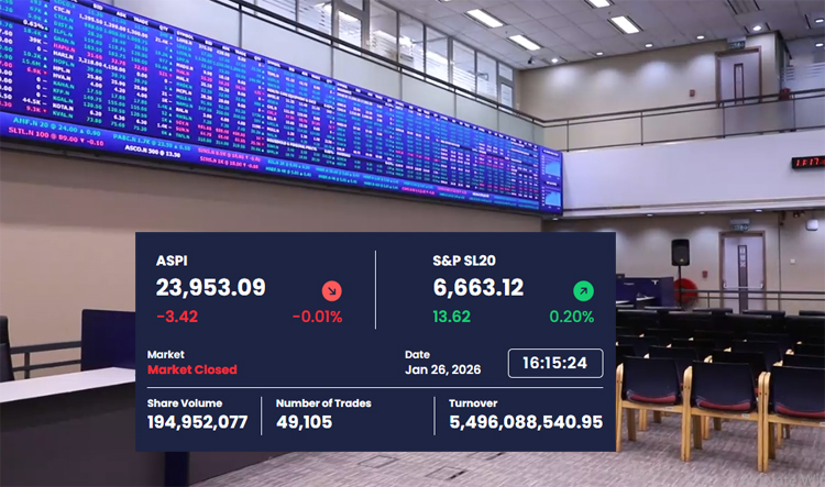 In the early hours of trading, the ASPI crossed the 24,000-point threshold multiple times. However, it gradually decreased in the second half of the session, ultimately closing at a lower level. By the end of trading, the ASPI settled at 23,953.09 points, whereas the S&P SL20 Index concluded at 6,663.12 points.