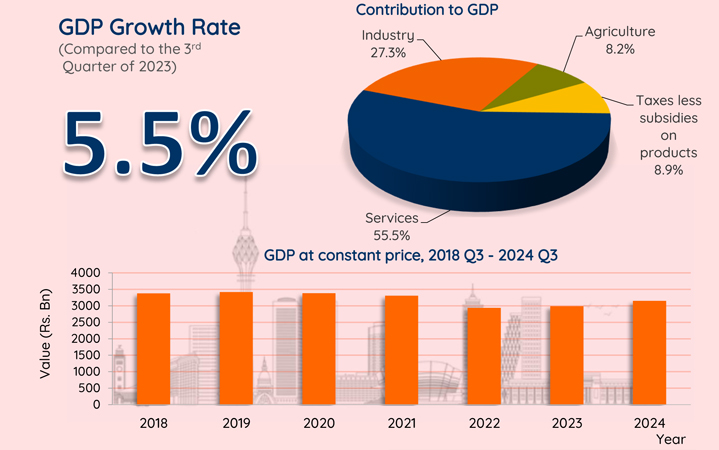 Sri Lanka’s real gross domestic product (GDP) for the first nine months of the year has been estimated at 9,866 billion rupees in constant terms, according to the latest data released by the state statistics office. This figure is nearly equal to the 9,751 billion rupees reported for the full year of 2021.