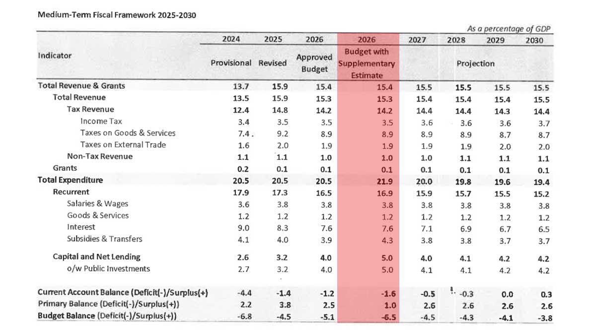 Sri Lanka’s budget deficit is projected to increase by 1.4 percent, reaching 6.5 percent of the gross domestic product (GDP) in 2026. This rise is attributed to additional expenditures for Cyclone Ditwah relief and recovery, according to a document from the Finance Ministry.