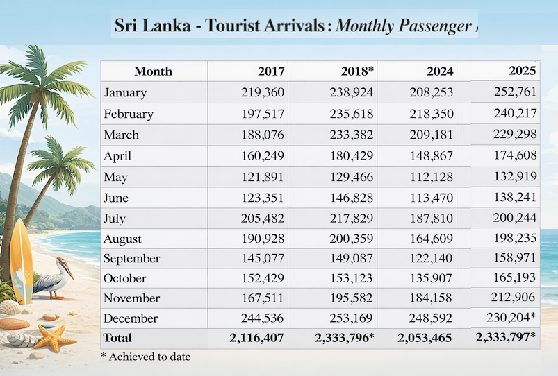 The National Peoples Power government of Sri Lanka had set ambitious targets for the year, aiming for a revenue of 5 billion US dollars and 3 million tourist arrivals. (Colombo/Dec29/2025)