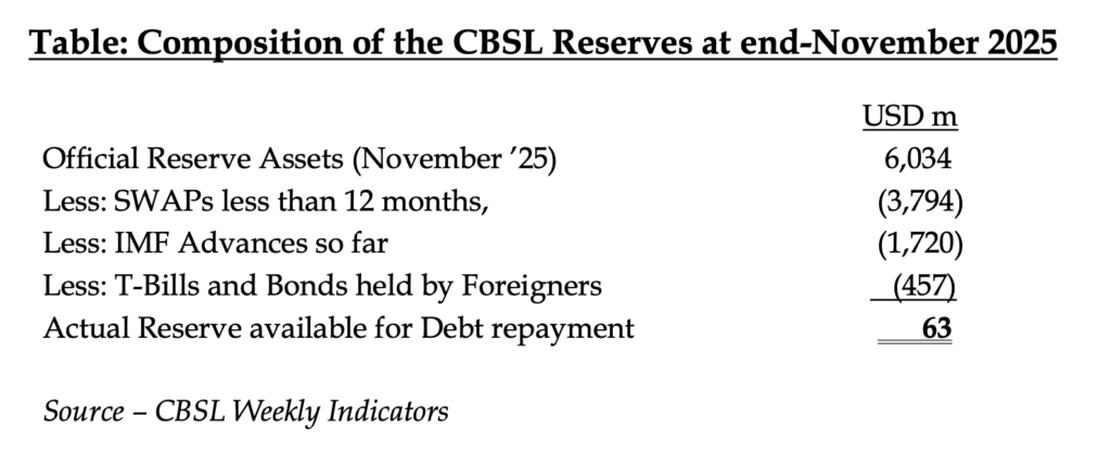 Economists warning of long-term risks argue that the most alarming aspect of the situation is not merely the low level of usable reserves, but the absence of any meaningful reserve build-up despite nearly four years of a “debt holiday.” Compounding this concern is the lack of clear policy initiatives capable of delivering strong economic growth, export expansion, or sustained foreign exchange inflows in the coming years.