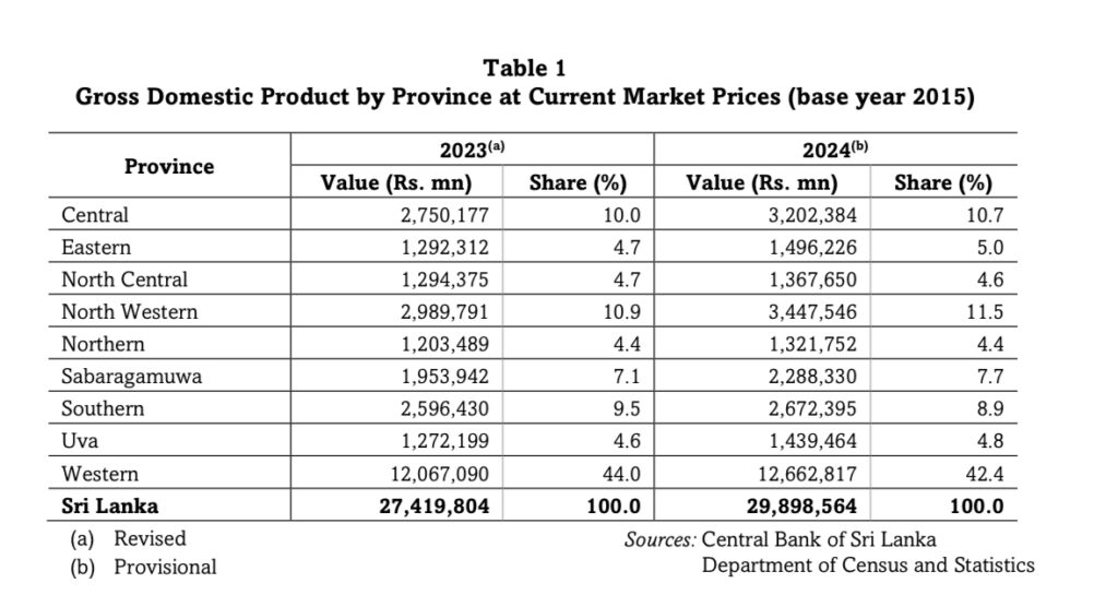 Sri Lanka’s Western Province continued to dominate the national economy in 2024, accounting for 42.4 per cent of nominal Gross Domestic Product (GDP), even as other provinces increased their combined contribution, according to the latest Provincial Gross Domestic Product (PGDP) estimates released by the Central Bank of Sri Lanka.